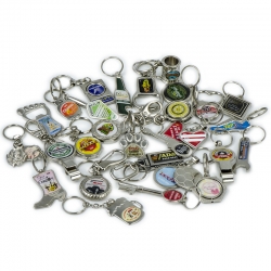 Descrição: Mostruário de Chaveiros Medalhas e Pingentes.